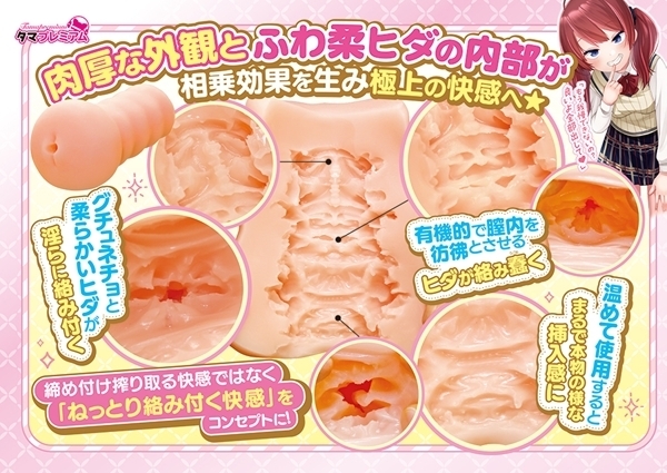 ミニ系ツインテール美少女のふわ柔名器はコンパクトながらもしっかりとした重量感が魅力の非貫通オナホです!全長170mm・重量520gのバランス設計で扱いやすさと安定感を両立しています♪内部には柔らかめのヒダ構造を採用し自然な感触を追求した設計です!フレキシブルスキン素材を使用し伸縮性と弾力性に優れた心地よい触感を実現♪回転使用も可能な構造で自由なスタイルで楽しむことができます!上下の区別がない仕様なので自分に合った角度を見つけやすいのもポイント♪日本製&ローション付きで安心してご使用いただけます!可愛らしいイメージと機能性を両立した実用性の高い非貫通オナホです♪●TMPR-057 |
