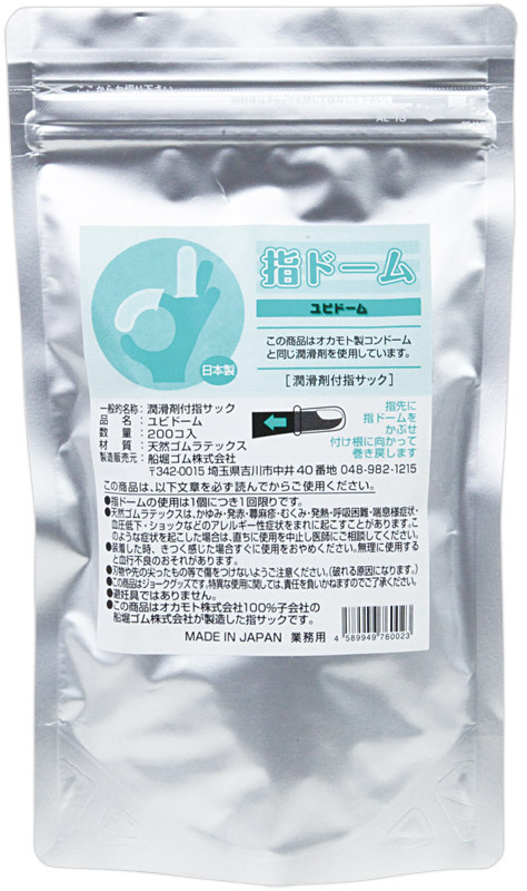 ヴァギナやアナルの愛撫に!薄くてフィット感に優れた指装着型コンドーム(200個入)。ローションを塗布した使い捨てタイプ!指にはめることで爪に雑菌が入るのを防ぎ、傷つきやすい粘膜を保護できる日本製のフィンガーコンドームです。ナチュラルカラーの天然ゴムラテックス製!厚みがないため、感触を損なうことなく衛生的なプレイができます。