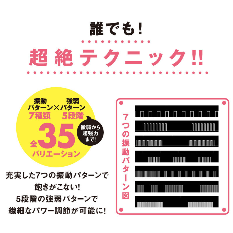 女性のオナニーに欠かせないアイテムと言えば電マ!?女性から圧倒的人気の電マに、全35種の振動を持つ多機能アイテム登場。●肌触りのいい高品質シリコンを採用●女性が手に持って疲れない、ちょうどいいサイズ&ちょうどいい軽さ●ジャバラネックが360度回転●快感ポイントをピンポイントに刺激●振動7種類・強弱パターン5段階、計35の多彩なアクション●真ん中ボタン:電源ON/OFF&振動パターン変更●上下ボタンで振動の強弱調節。ビギナーさんはもちろん、アダルトグッズの刺激に慣れた方をも確実にイカすミニ電マです。 |