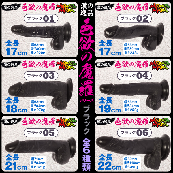 maccos japanのディルドブランドMARAMARAから【色欲の魔羅シリーズ】の登場です。サイズ的にもフォルム的にもスタンダードなタイプで、少し上反り気味だからスポットを狙いやすいかもです!全長17cm、最大径3.5cm、挿入長12cm。ブラックカラーの色欲に溺れるリアルな外観と感触がたまらない!本物志向のスタンダードなディルドです。01は先端が上方に反り立ち、ナカのGスポット責めに最適。適度な弾力と硬さを兼ね備え、本物以上の質感は貴女を虜にすることでしょう。床、壁、浴槽とどこにでも張り付く強力吸盤付きで楽しむ場所を選びません。初心者から上級者までしっかりと楽しむ事が出来ます。 |