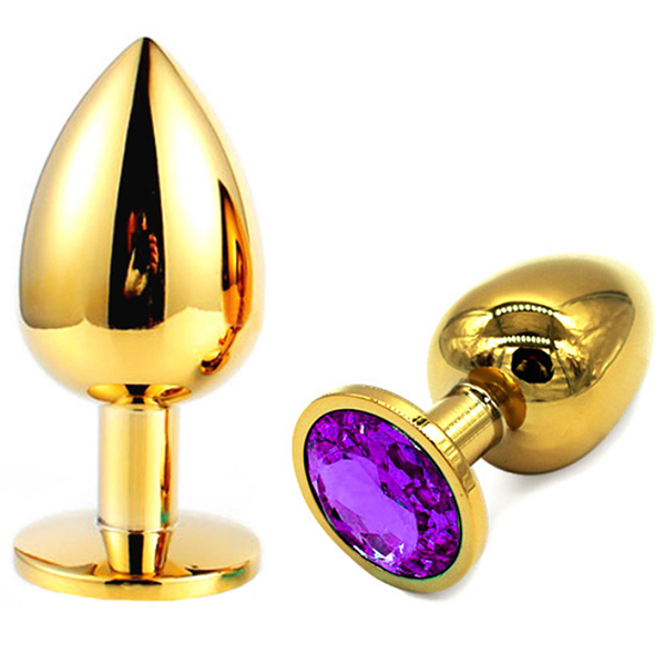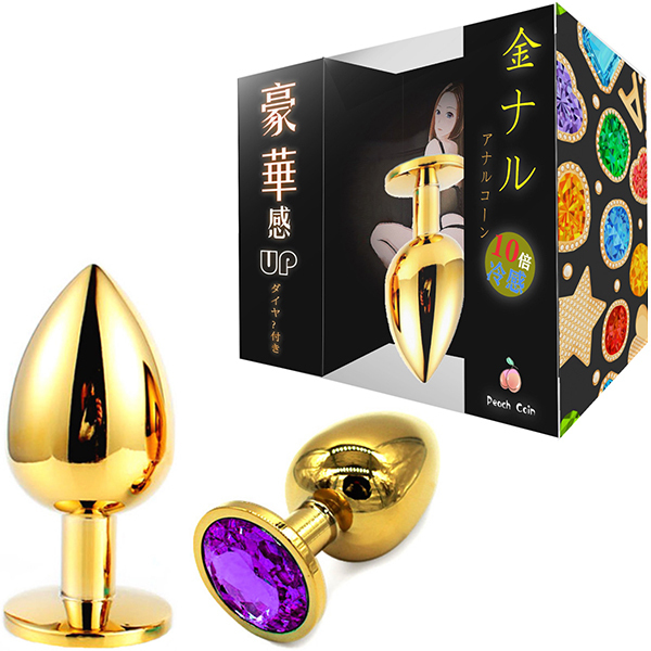 金色のプラグにキラキラとしたゴージャスな輝き!メタルの重量感・冷感がアナルを刺激し見た目も華やか。サイズもS・M・Lの3サイズあるため、お好みのサイズとカラーでお楽しみください。Sサイズ、パープル