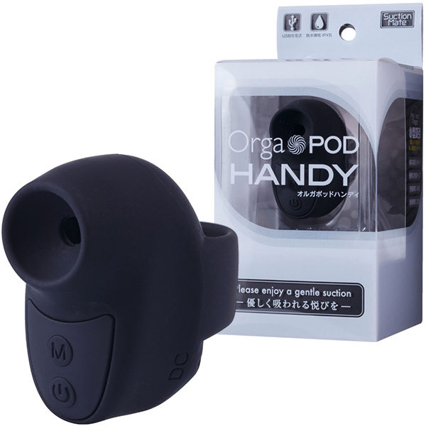 可愛いデザインと確かな吸引力で人気のオルガポッド・シリーズから指にはめて使用する超小型サイズの「オルガポッドハンディ(ブラック)」が登場!3段階のパワー強弱と7段階の振動パターンが楽しめて、お肌に優しいシリコン素材だから、つるっとした柔らかい感触をお楽しみいただけます。40分の充電でおよそ30分の連続使用が可能♪IPX5相当の防水性能を完備しており、使用後は優しく洗い流すことも可能です(水の中に沈めることは、おやめください)。操作も簡単で電源スイッチを長押しで吸引スタート!小型なのでパワーでは他のオルガポッド・シリーズに敵いませんが、優しく心地よい吸引振動をお届け致します♪カラーバリエーションはピンク・ブルー・ブラックの3色展開!小型で使いやすい、魅惑の吸引体験をお楽しみください。 |