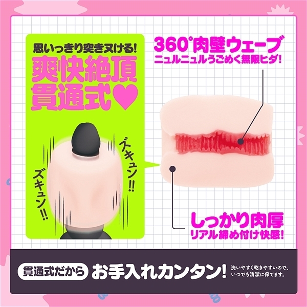 突きヌける快感!爽快絶頂の貫通式ホール!ニュルニュルうごめく無限ヒダの超リアル肉壁ウェーブ!ずっしり肉厚の重量約300g!ギュギュッと締め付けるリアル挿入感!使うほどに成長する革命的素材「momochi」素材使用しています。使うほどにあなたに馴染んで成長する、もっちり人肌感覚の新素材です。お手入れカンタン貫通式!洗いやすく乾きやすいので、いつでも清潔に保てます。直接肌に触れるものだから、安心の国産素材&国内生産 MADE IN JAPAN。パッケージイラスト:CloBA
