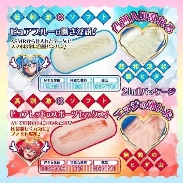 個性的な設計が特徴の非貫通型ホール2本セットです♪ピュアブルーとピュアレッドの2種類がセットになっており、異なる感触を楽しめます!ピュアブルーは柔らかめの弾力で、波状ヒダと突起が絡み合う構造♪じっくりとリラックスした時間を過ごしたい方におすすめです!一方、ピュアレッドは縦ヒダ構造で高刺激を提供し、アクティブな使用感を求める方に適しています!どちらも柔らかめの素材で心地よい使用感を実現しています♪COOLP初の1箱2本入りパッケージで、シーンに応じて使い分けることが可能です!ユニークな設計で、自宅でのリラックスタイムに彩りを添える特別なアイテムです♪ |