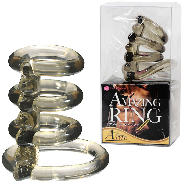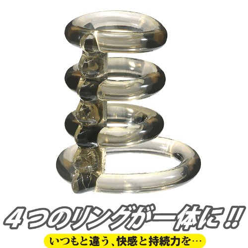 新しい刺激と快感に出会える!男根をしっかりと締め付け、持久力アップを強力にサポートする4連リング仕様の男性補助グッズ。タイプAはシンプルなリング形状!さらに連結部分の波形状が相手の敏感なところを責め立てます。また、リングを玉袋に通すか通さないかで体感する刺激が変化!いつもと違う快感と持続力で、貴方の日常を変えるペニスリングです。