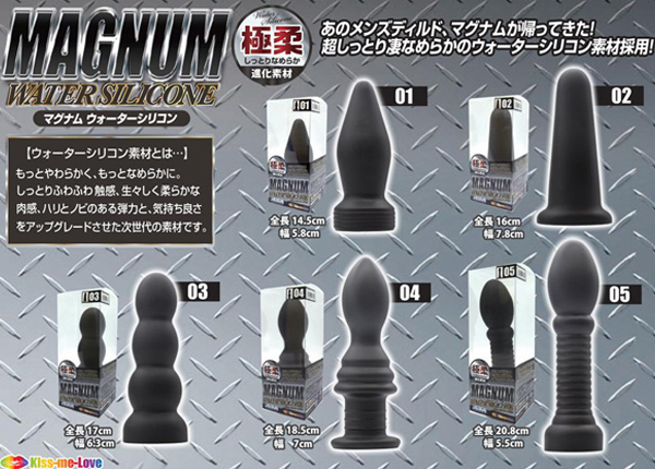 ブラックが冴えわたる本格派ディルドが最新素材になって新登場!極上素材を採用した「マグナム ウォーターシリコン」!黒い欲望を満足させるエキスパートなボディライン。その魅力をそのままに素材をグレードアップしました。シリコンを超える進化素材。超しっとり凄なめらか快感度を追求した進化素材、それがこのウォーターシリコン素材なのです。しっとりきめ細やかな質感に生々しい生体的な肉感弾力、人体や環境にも優しい安心材料。アダルトグッズのステージを高めべく進化したマテリアルです。熟練者向けのマニアな形状に極上の肉々しさをプラスしたゴージャスなディルドです。調教や拡張などのハードコアでエクストリームなプレイにぴったりなシリーズとなりました。「MAGNUM」の名の通りパワーあふれる快感をご体験ください。「02」は、太さ4〜6センチの円錐型フォルム。挿れるほどに太くなる魅惑の快感! |