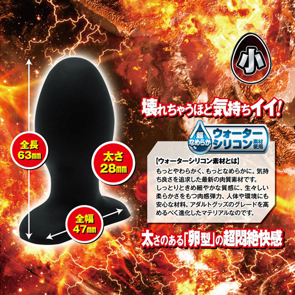壊れちゃうほど気持ちイイ!太さのある卵型のアナルストッパー「アナル破壊」!サイズは小さめなのに、気持ち良さは破壊的!その秘密は、太さのある卵型の形状!圧迫感を強めるフォルムで、ストッパーの魅力である「詰まっている感」を最大限に刺激します。卵型が生み出す、超破壊的な尻穴悶絶快感をお楽しみください!さらに、使用素材にもこだわりました!破壊的な気持ち良さを加速させる、最新素材「ウォーターシリコン」を使用!もっとやさしく、もっとなめらかに。高級アダルトグッズに使われるシリコン素材をさらに進化させた、アダルトグッズをアップグレードする最新の肉感素材です。きめ細やかな質感、生々しい弾力、環境に優しい材料など、一歩進んだこの素材をぜひご堪能ください!「小」は、全長63ミリ×直径28ミリの小さなマイクロプラグ!他では味わえない破壊的な快感が楽しめます! |